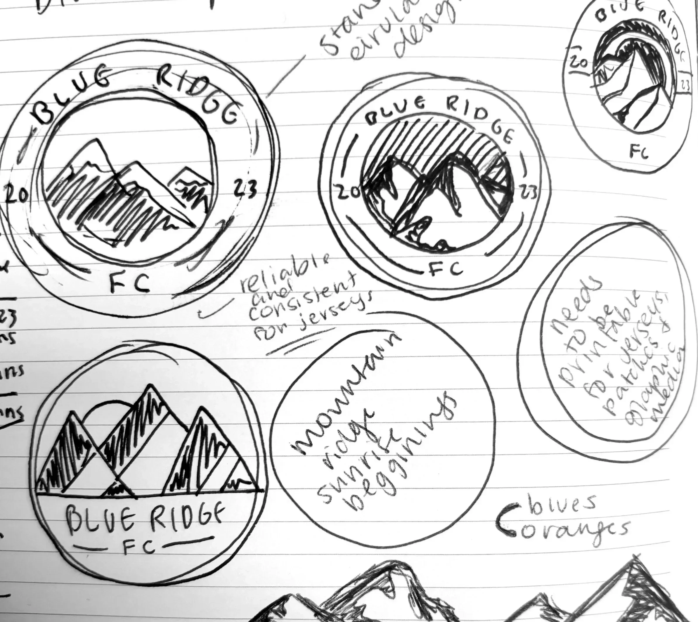 The logo development began with hand-drawn sketches exploring circular badge forms, a classic structure within soccer branding.